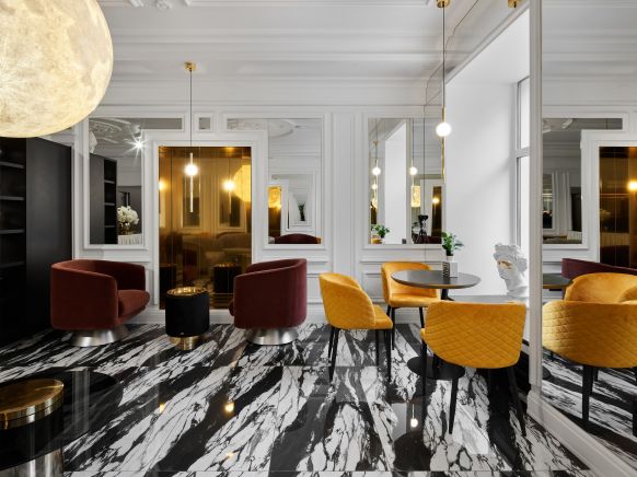 Отель располагает 115 роскошными номерами, которые поделены на различные категории. Интерьер комнат выполнен в сдержанном петербургском стиле. Стены украшены картинами. Большие, удобные кровати, новая мебель, телевизор с плоским экраном и беспроводная сеть Wi-Fi, порадуют гостей.