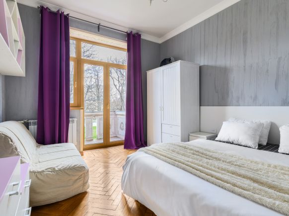 Жилье оснащено качественными техникой и мебелью. Из спальных мест — диван-кровать и раскладушка. Благодаря девятому этажу из окна открывается живописный вид на город и улицу, который создает особую атмосферу. Для постояльцев доступны халат, стиральная машина, фен и тапочки. Санузел совмещен с душем. Есть балкон. Для разнообразия досуга есть смарт ТВ и скоростной WI-FI.