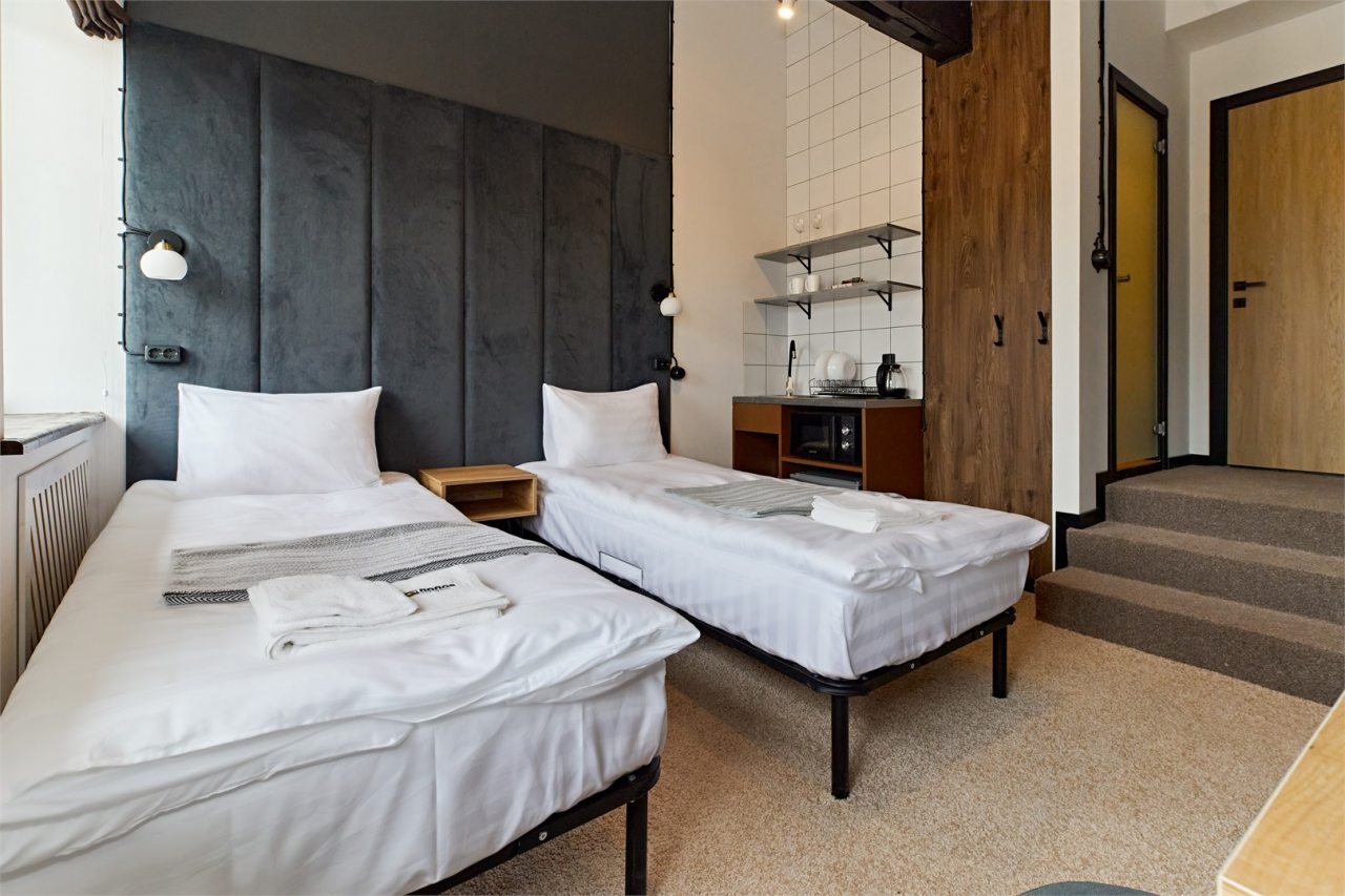 Симпатичный отель. Отличная цена за размещение на сутки. Да, номер очень маленький, все тесно установлено, но за такую цену - просто супер! Так еще и находится на Петроградке, совсем рядом с основными достопримечательностями Питера. Несмотря на свою компактность, порадовали базовые удобства, которые каким-то чудом все уместились: холодильник, микроволновка, чайник, посуда, своя ванная комната. Сервис на все 100!