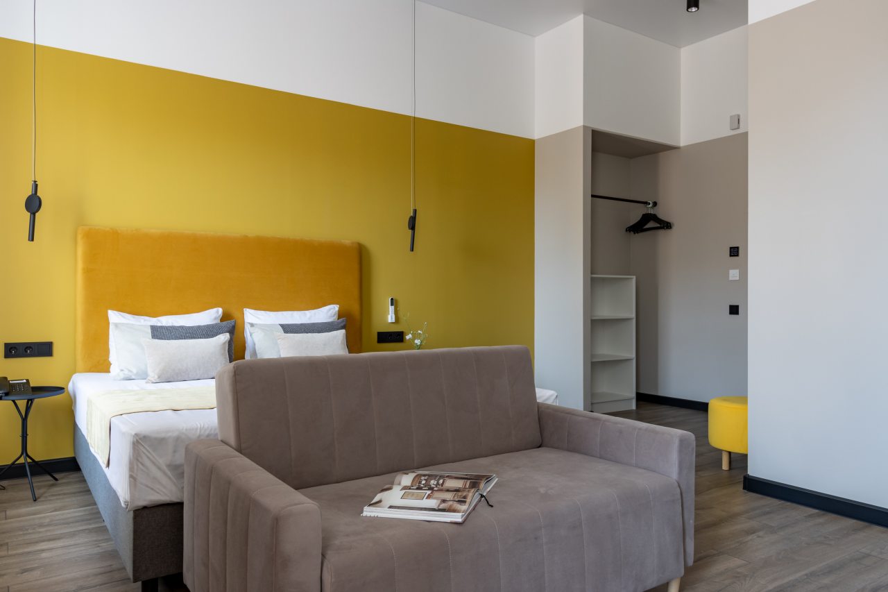 Номера делятся по нескольким категориям – «Простой люкс» и «Для новобрачных», «Семейный», «Для некурящих», «С видом на город», «Одноместный», «Двухместный». Бронируйте проживание на официальном сайте 101Hotels.com по самым выгодным предложениям. В оформлении нет многочисленных контрастных оттенков. Преимущественно – теплые и нейтральные тона. Среди удобств в номерах предусмотрена качественная мебель, есть ванная комната, телевизор с кондиционером, а также доступ к Wi-Fi по всей территории.
