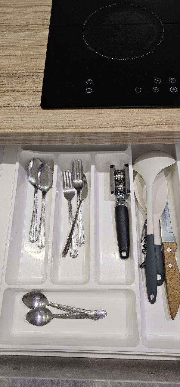 На кухонной зоне вы сможете воспользоваться электрической плитой, СВЧ-печью, холодильным шкафом, приборами и посудой. Чтобы купить продукты, рядом доступны магазины, а поужинать можно в кафе или столовой поблизости.