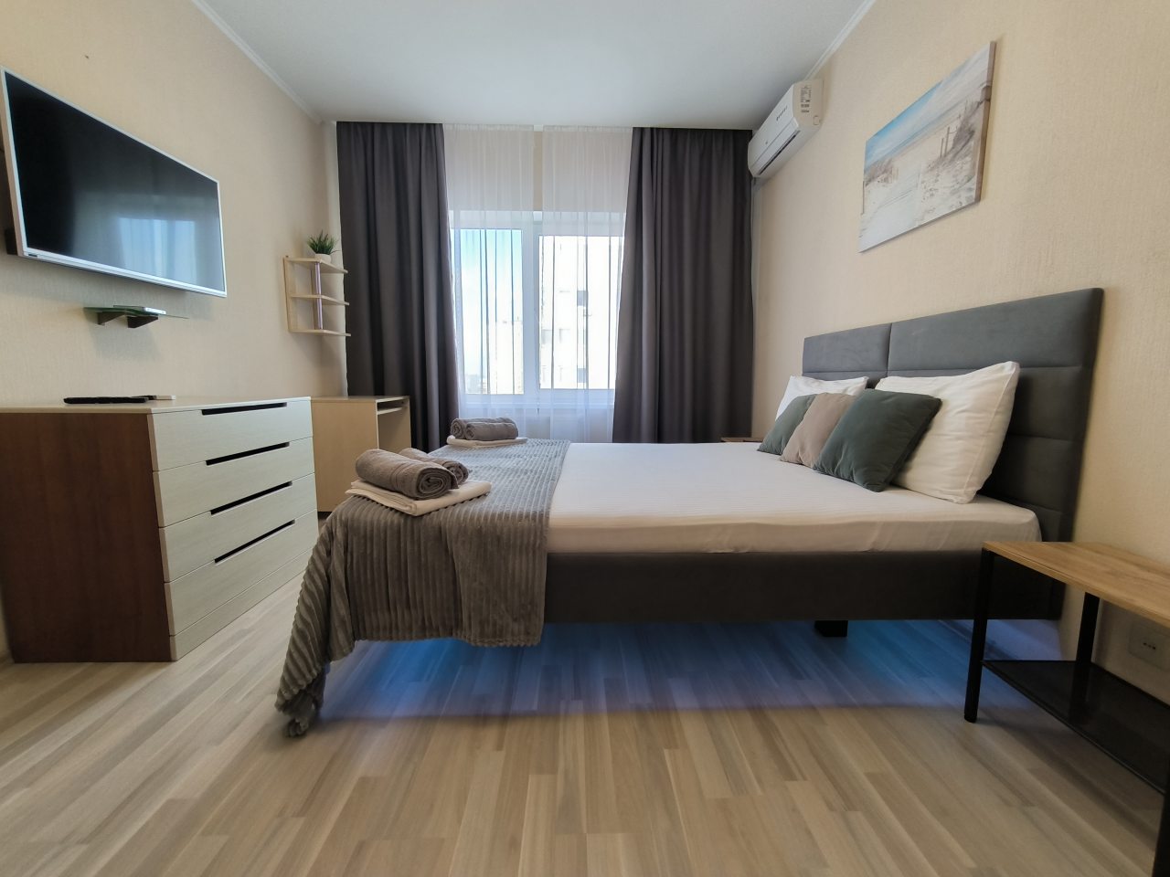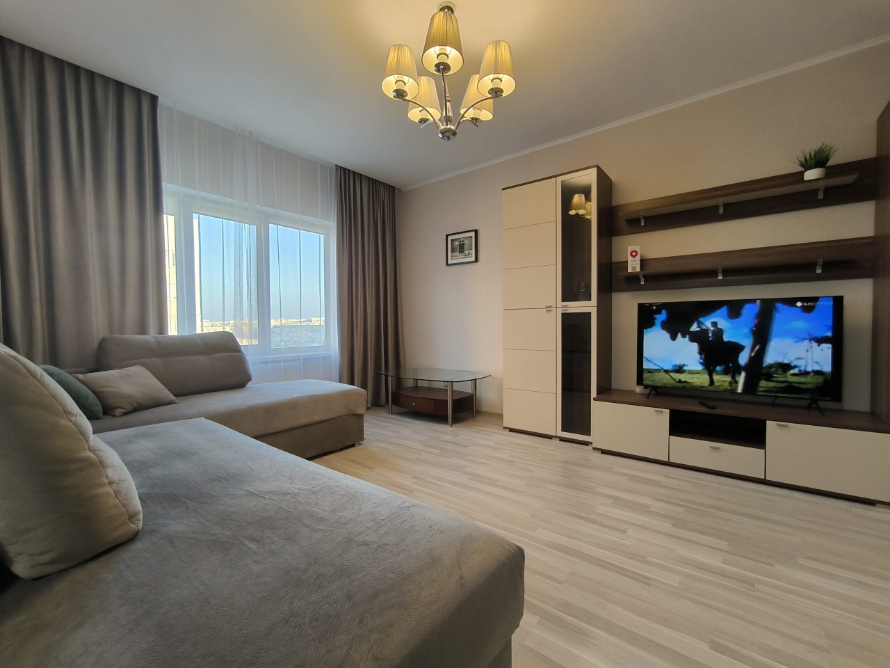 Отличные просторные апартаменты с приятным дизайном и хорошим расположением. Состояние мебели и техники тоже хорошее. Кровать удобная, чисто, по-домашнему уютно. Красивый балкон с рабочей зоной и панорамными окнами. В целом никаких нареканий нет, поэтому советую.