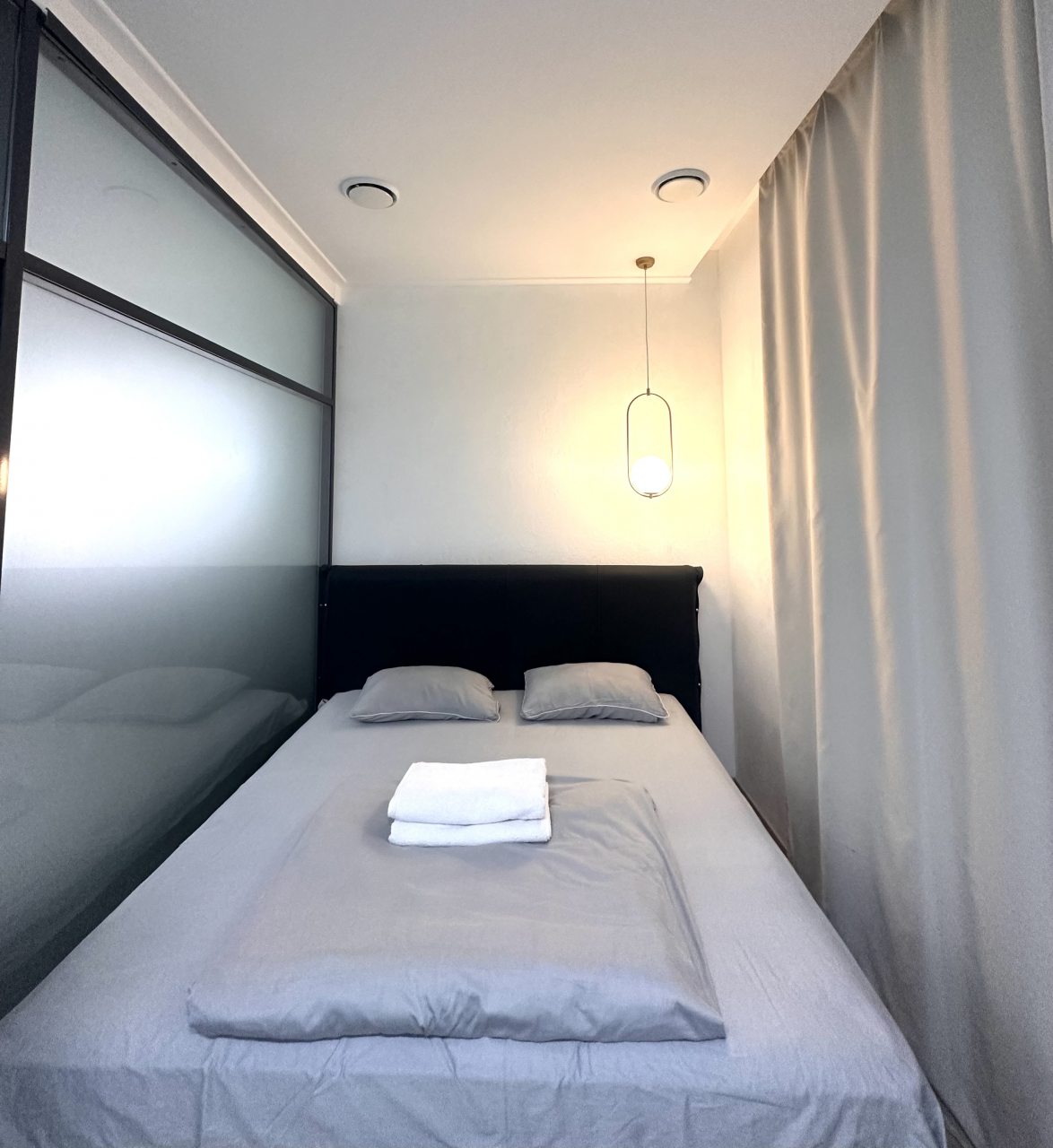 На площади 60 квадратных метров имеется все необходимое для проживания и отдыха, в том числе двуспальная кровать с удобным матрасом, вместительные шкафы, телевизор, раскладной диван, балкон с креслами, санузел со стиральной машиной.