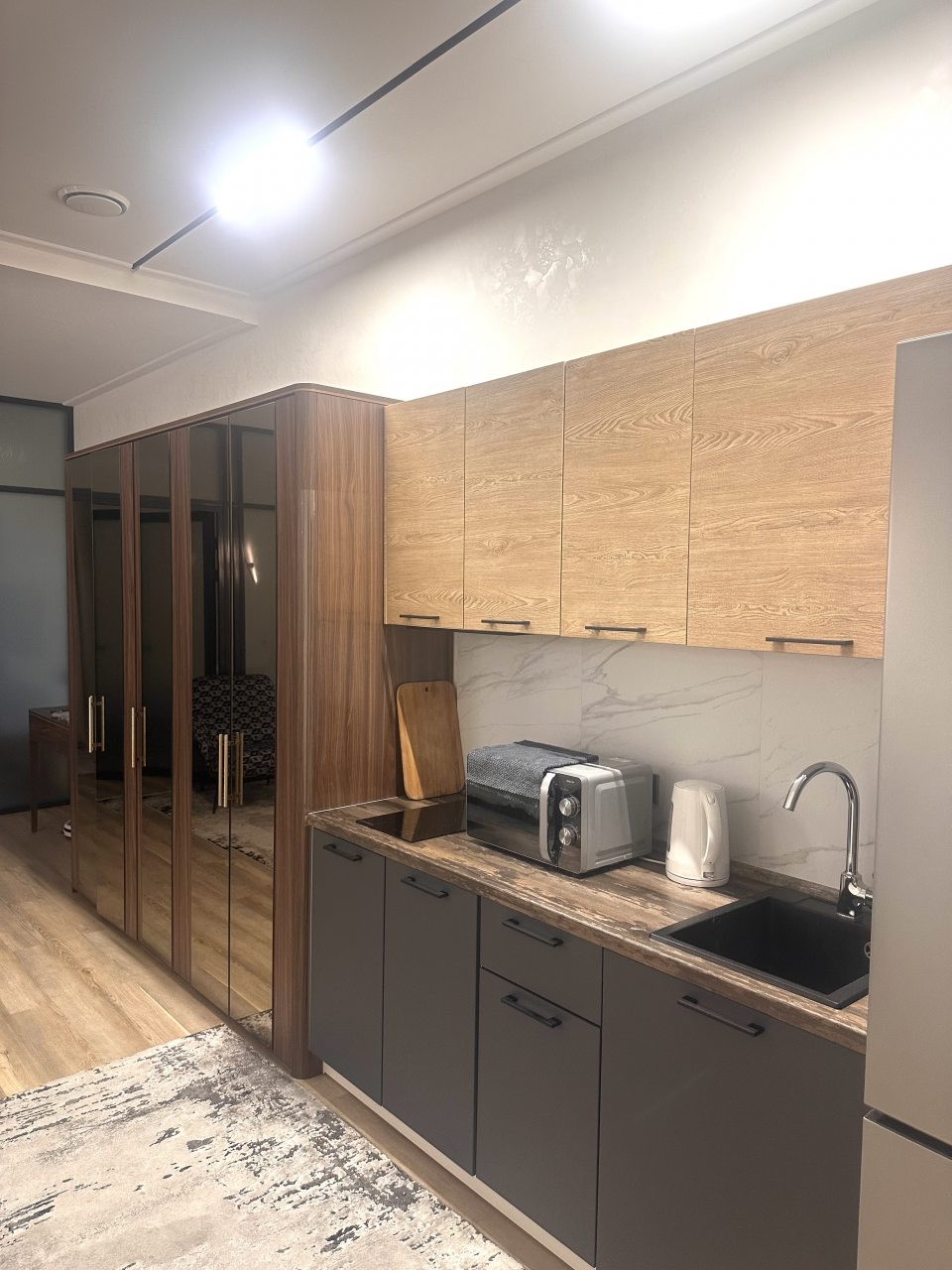 Зона кухни включает в себя варочную панель, СВЧ-печь, чайник, красивую обеденную зону. Таким образом, вы всегда сможете приготовить любимые напитки и блюда.