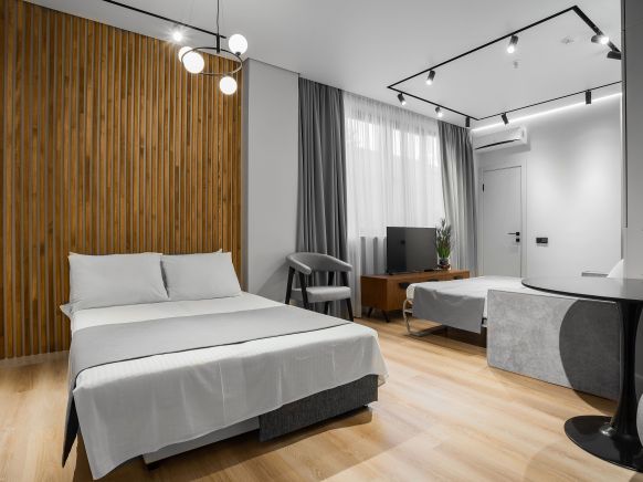 Локация удачная – парк рядом, море тоже недалеко. Апартаменты просторные, приятно оформленные, с большими окнами. Хозяйка встретила нас тепло, быстро заселила и рассказала все детали. Нам особенно понравился вид из окна, утром открывался красивый пейзаж. Район тихий, ночью можно спокойно выспаться.
