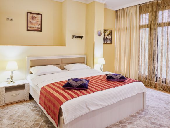 В нашей комнате места было достаточно для семьи из 3 человек. Холодильник небольшой, но вместительный. Персонал очень дружелюбный. Сама гостиница расположена недалеко ЖД вокзала. Отдыхом остались довольные, и планируем приехать сюда еще раз.