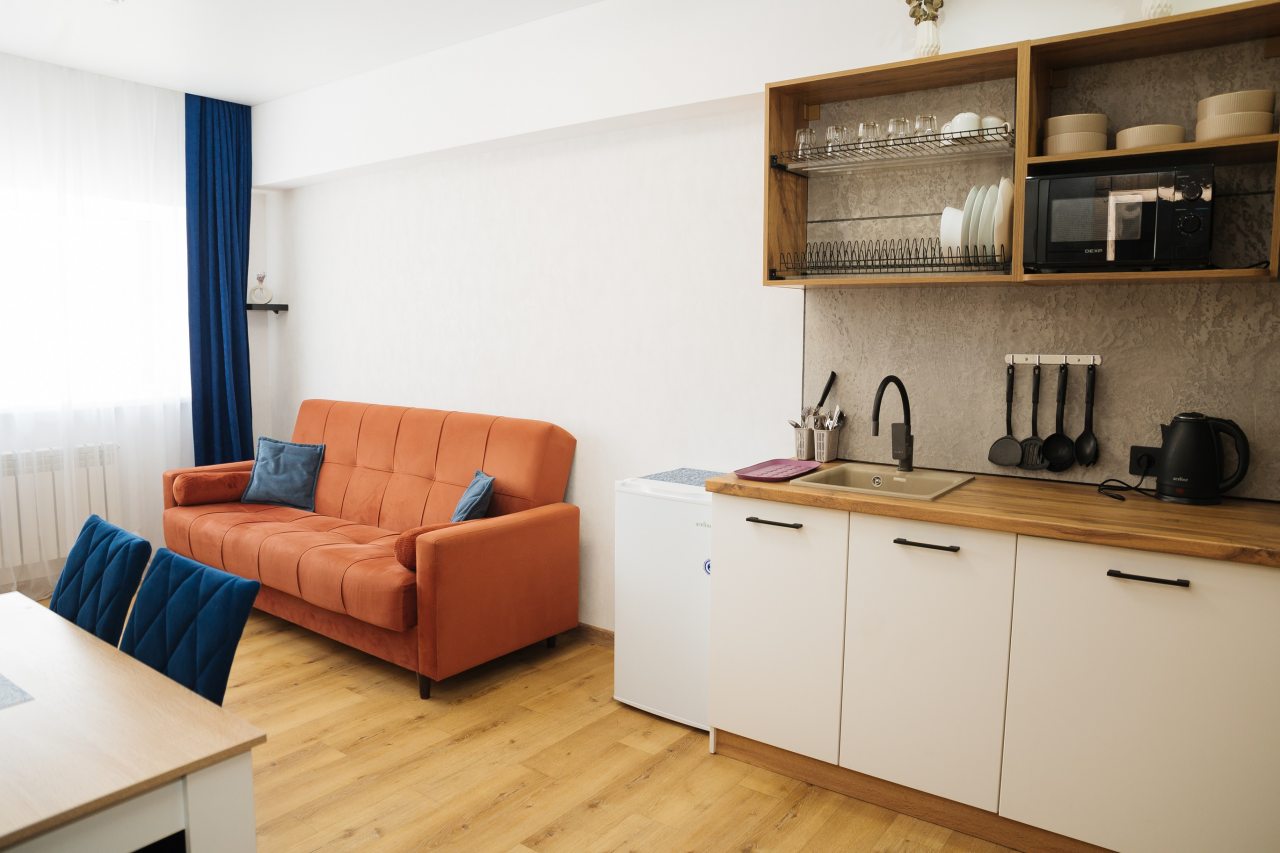 В большинстве номеров имеется мини-кухня с чайником, СВЧ, плитой, посудой, холодильником. Таким образом, вы в любой момент сможете приготовить любимые блюда и напитки.