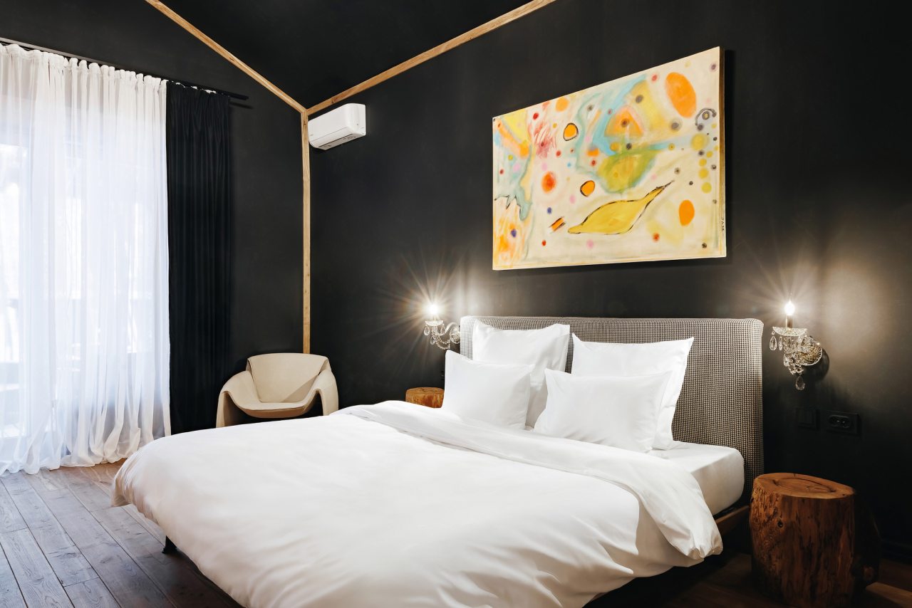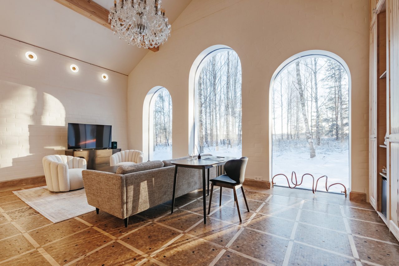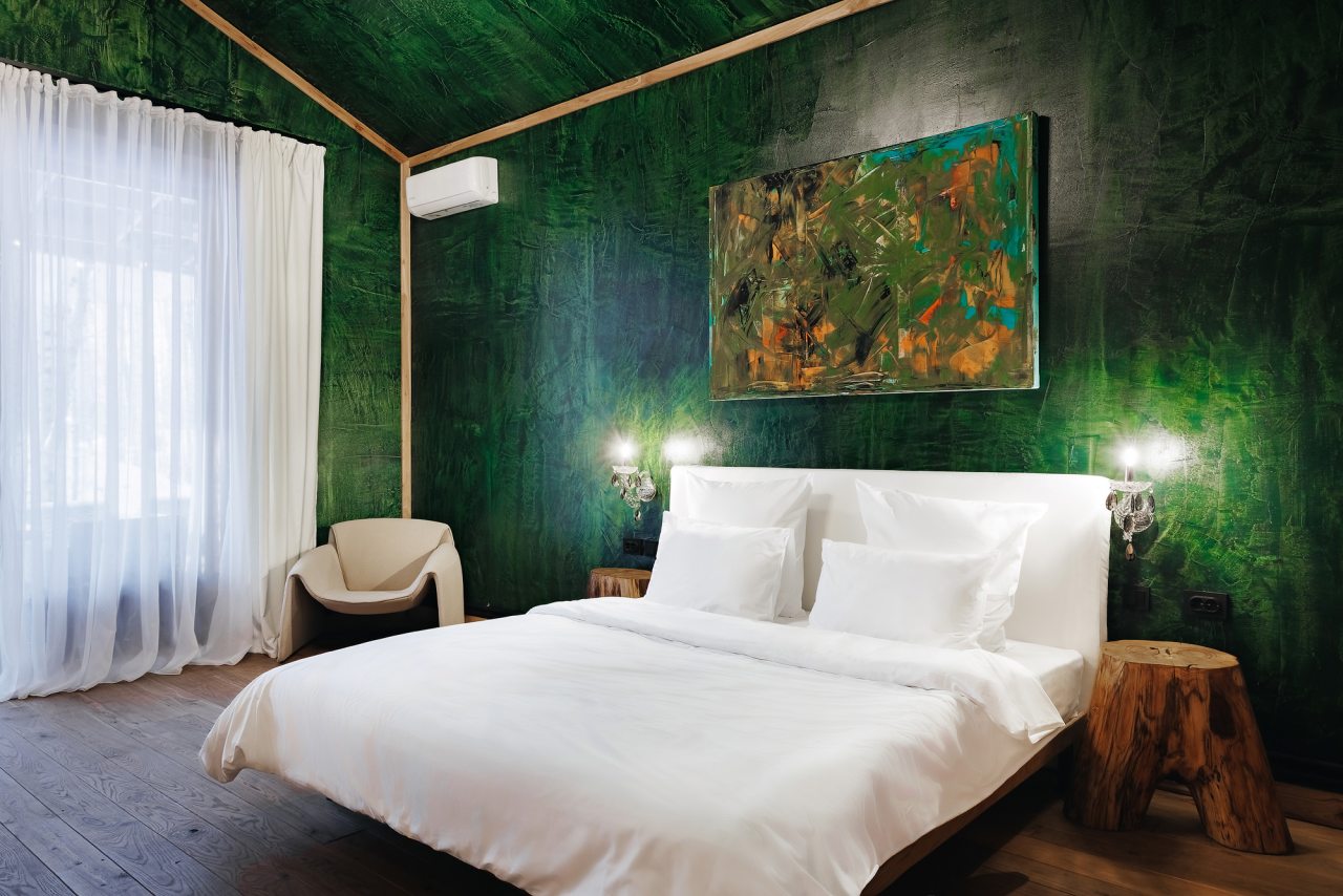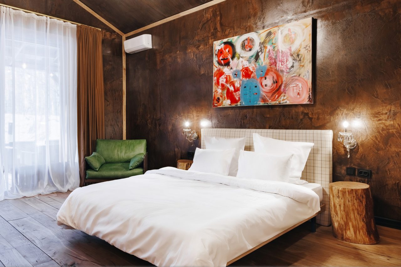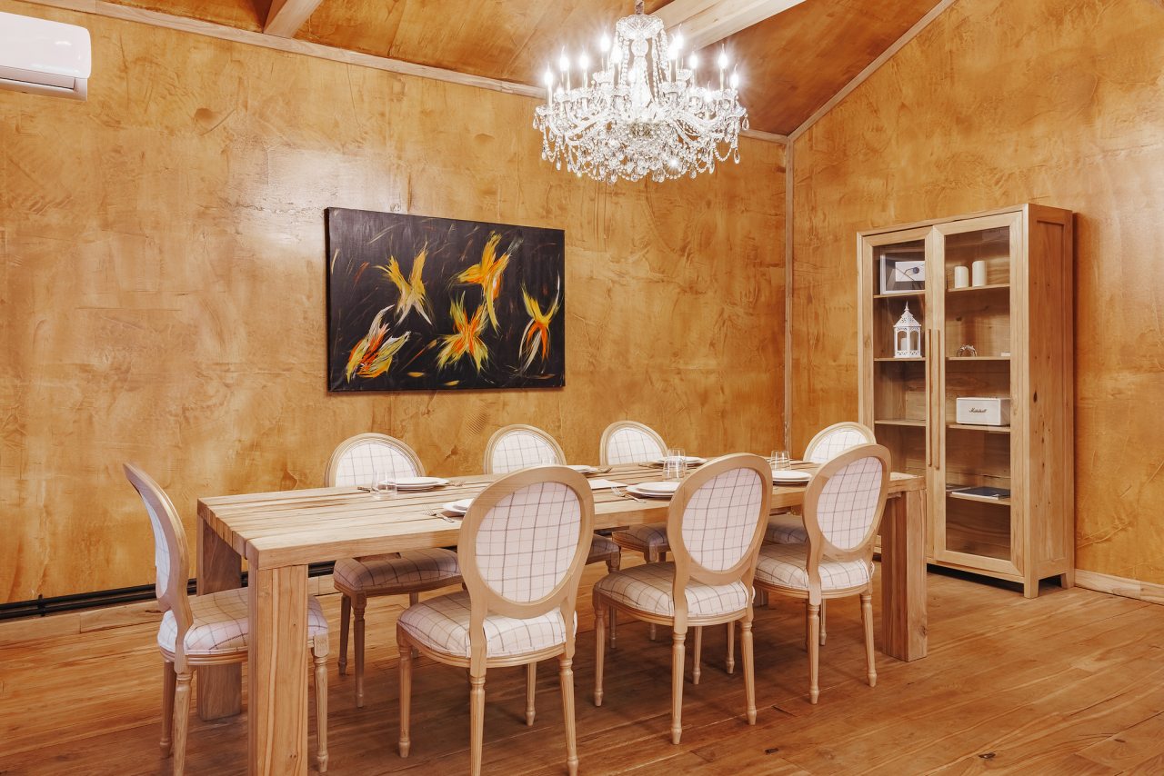Коттеджи премиум-класса оформлены в авторском стиле, который удачно сочетает современность и элементы декора из природных материалов. В распоряжении гостей будет фен, Wi-fi, собственная ванная комната с набором полотенец, а так же телевизор.