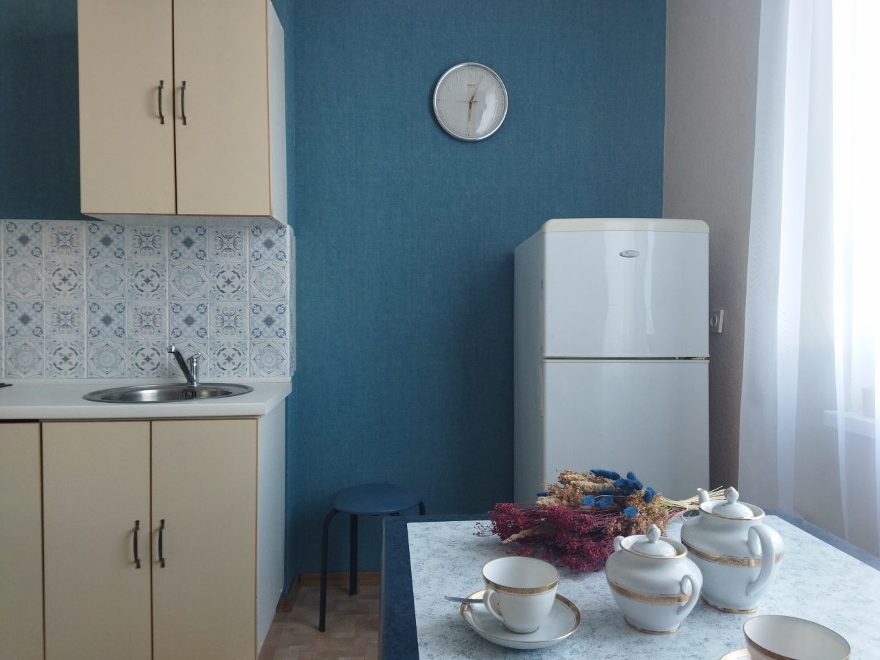 Кухня оснащена гарнитуром, холодильником, электрочайником, газовой плитой, микроволновой печью и др. Пообедать можно в одном из ближайших кафе.