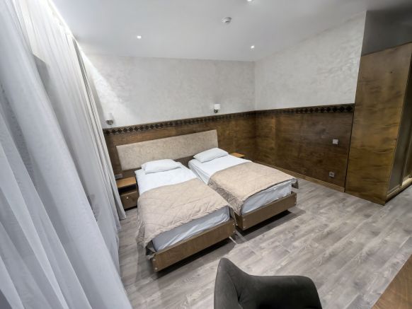 Провели здесь неделю на отдыхе после катания на склонах. Комнаты тёплые, кровати удобные, вода всегда горячая. Вечером приятно сидеть у окна с видом на горы. В столовой вкусная еда, порции щедрые. Всё по-домашнему, спокойно. После прогулок особенно приятно возвращаться в тепло.