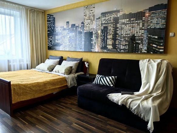 Комфортабельные апартаменты оборудованы удобной двуспальной кроватью, шкафом, прикроватными тумбами, розетками возле кровати, затемненными шторами, гладильными принадлежностями, точкой высокоскоростного интернета, телевизором с онлайн-кинотеатром KION, вешалками для верхней одежды, собственной ванной комнатой и балконом. Санузел раздельный и имеет комплект качественной сантехники, стиральную машину и средства личной гигиены.