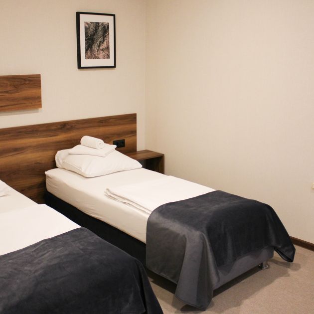 Из Туапсе уезжали поездом. Отправление в полночь, поэтому сняли номер в отеле на одни сутки. Заехали в одиннадцать часов, нам сразу предоставили номер. Номер был на третьем этаже. В номере 3 кровати, шкаф, большой холодильник, стол с 2-мя стульями, телевизор, кондиционер, окно с видом на улицу, комната с душевой. Хочется отметить чистоту как в целом в отеле , так и в номере. Персонал отеля очень доброжелателен. Для нас было очень важно расположение, а оно просто супер - в 2-х минутах от жд вокзала в центре города. Подробнее
