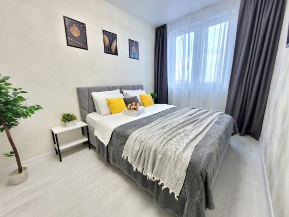 Апартаменты на чистую Пятерку! Местоположение отличное, 10 минут по мосту и ты в центре! Автобусные остановки рядом. В квартире чисто, все в наличии (полотенце, кухонные приборы, ванные принадлежности). Заселение по телефону, все четко и понятно! В следующий раз только сюда! Спасибо