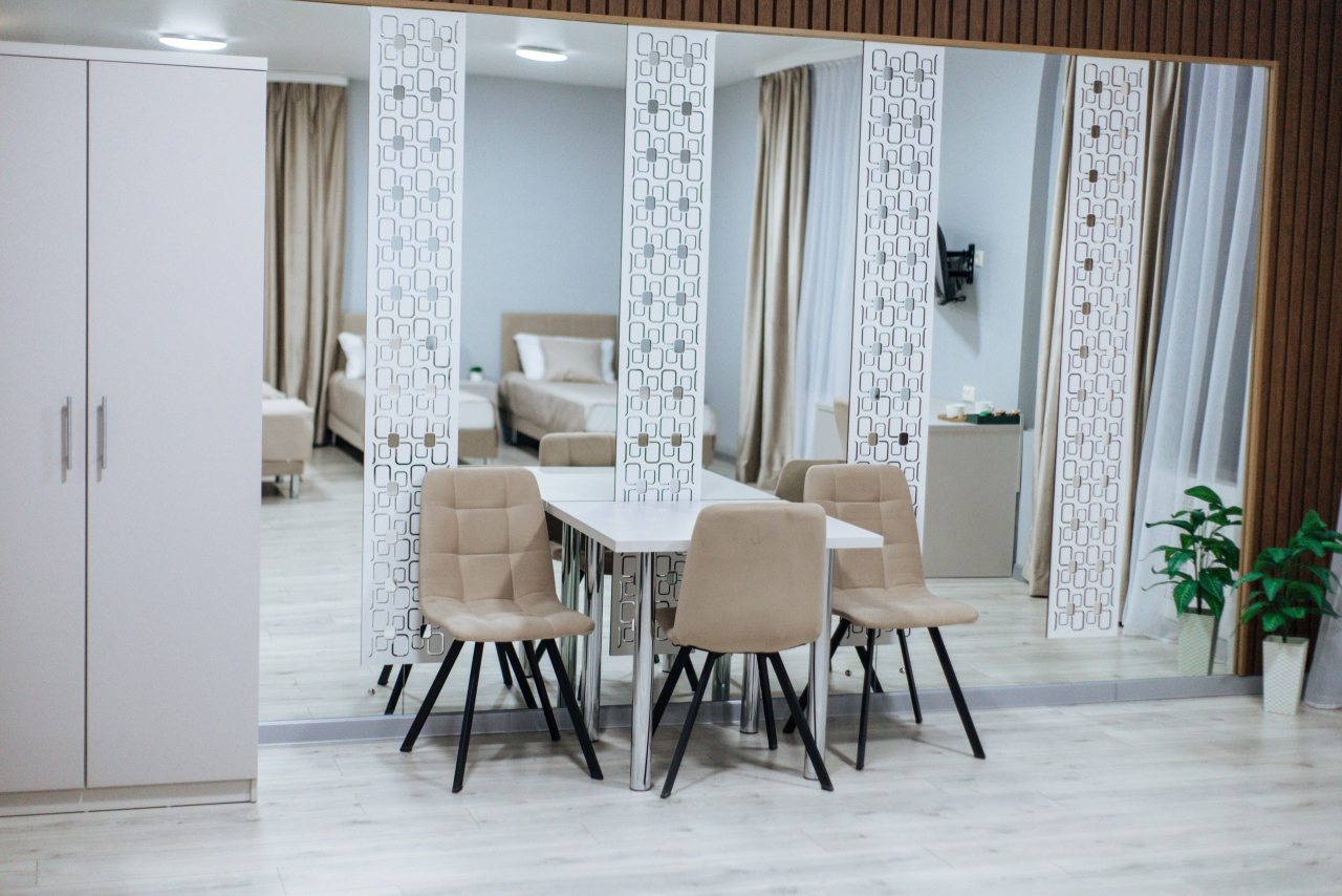 В отеле представлены 4 типа номеров: Стандарт, Стандарт Плюс, Комфорт и Люкс. Все номера оборудованы современными удобствами — от Smart-TV до сейфа и мини-бара — чтобы ваше пребывание было максимально приятным.