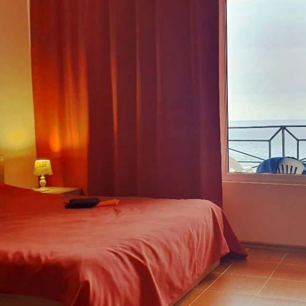 Отель на пляже. Окна и балкон выходит на море и на береговую линию. Это отличный вариант для поселка! Тем более, что отель сам небольшой и аккуратный. В номере свой санузел, ни с кем делить не надо, это ли не прелесть? Предоставляется гигиена и полотенца. Тут нет питания, но есть кухня в весьма приличном состоянии. Подробнее