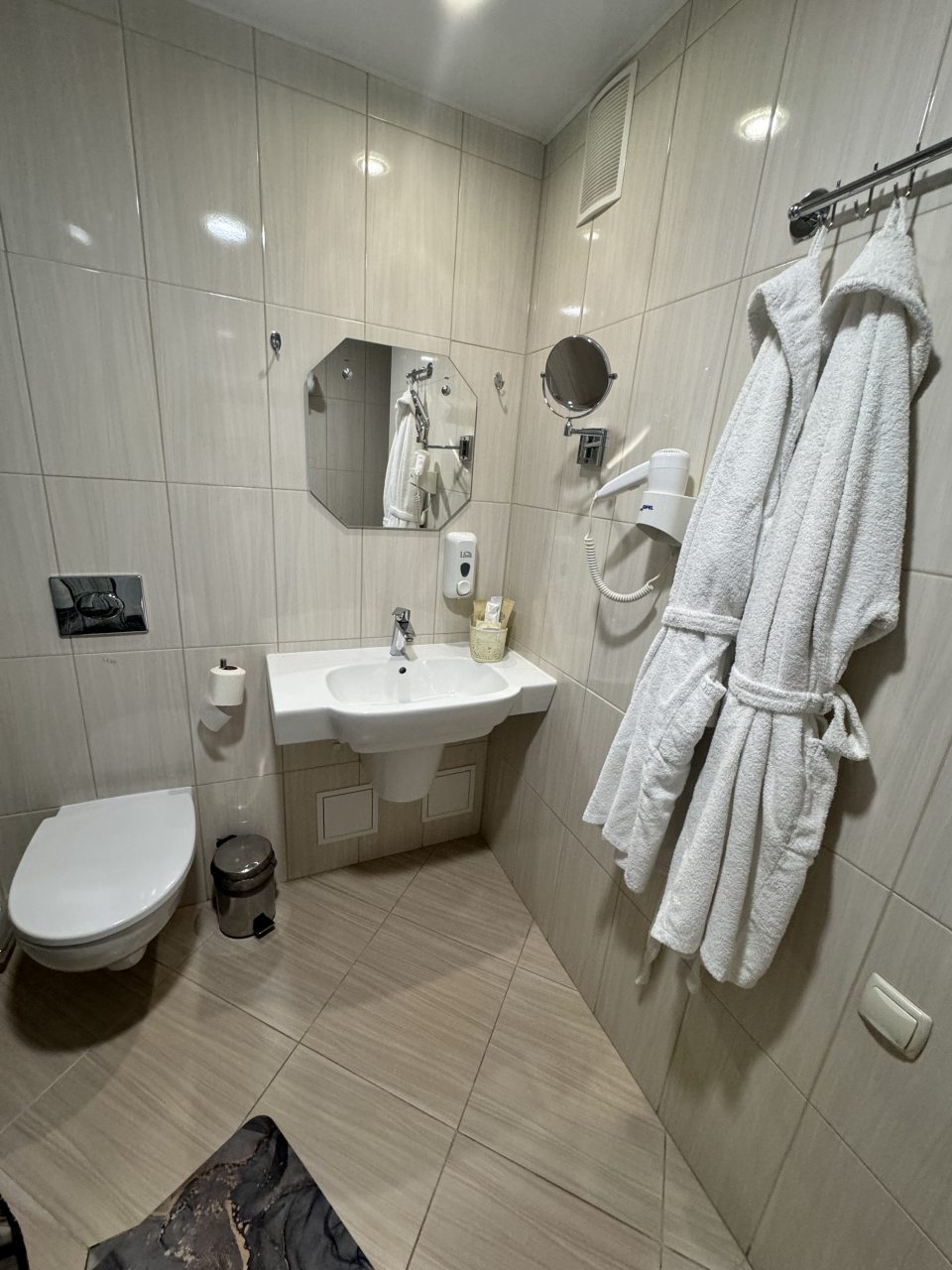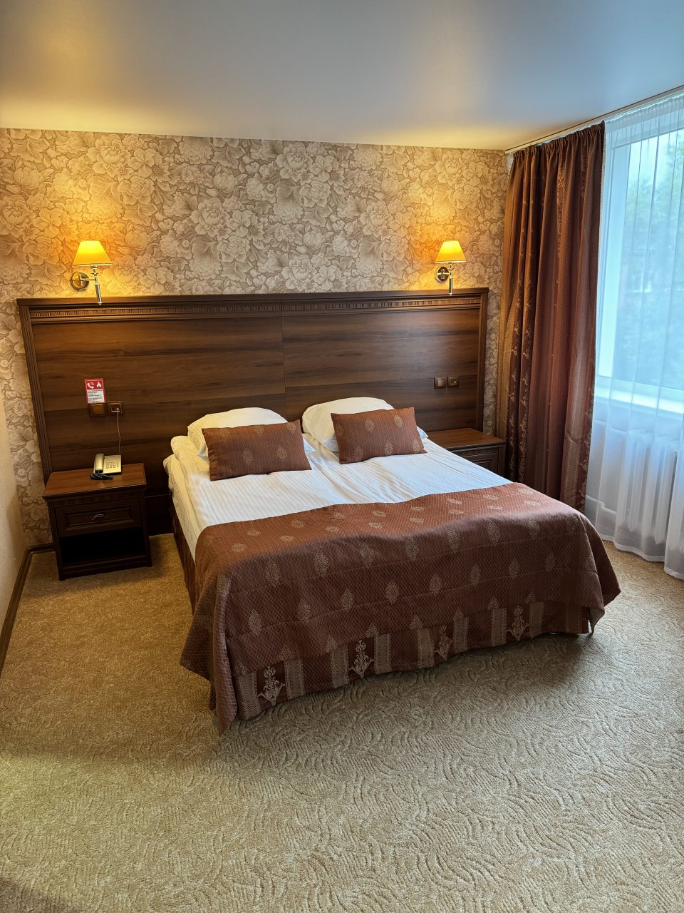 Для того чтобы переночевать, решил тут снять номер. Я об этой гостинице слышал разное от многих людей. Меня привлекло еще то, что она в центре, а я подумал, что могу еще и в театр перед дорогой успеть сходить. Относительно цены – все мне подходило. Я оплатило картой, что также меня устраивало. Сама гостиница с типичной обстановкой, есть талончик на еду.