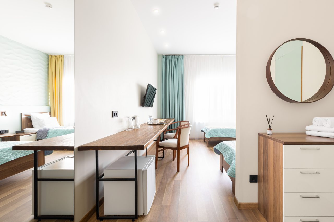 Номерной фонд представлен категориями с современным дизайном. Каждый номер включает в себя удобные кровати, телевизор с плоским экраном, кондиционер и собственную ванную комнату.
