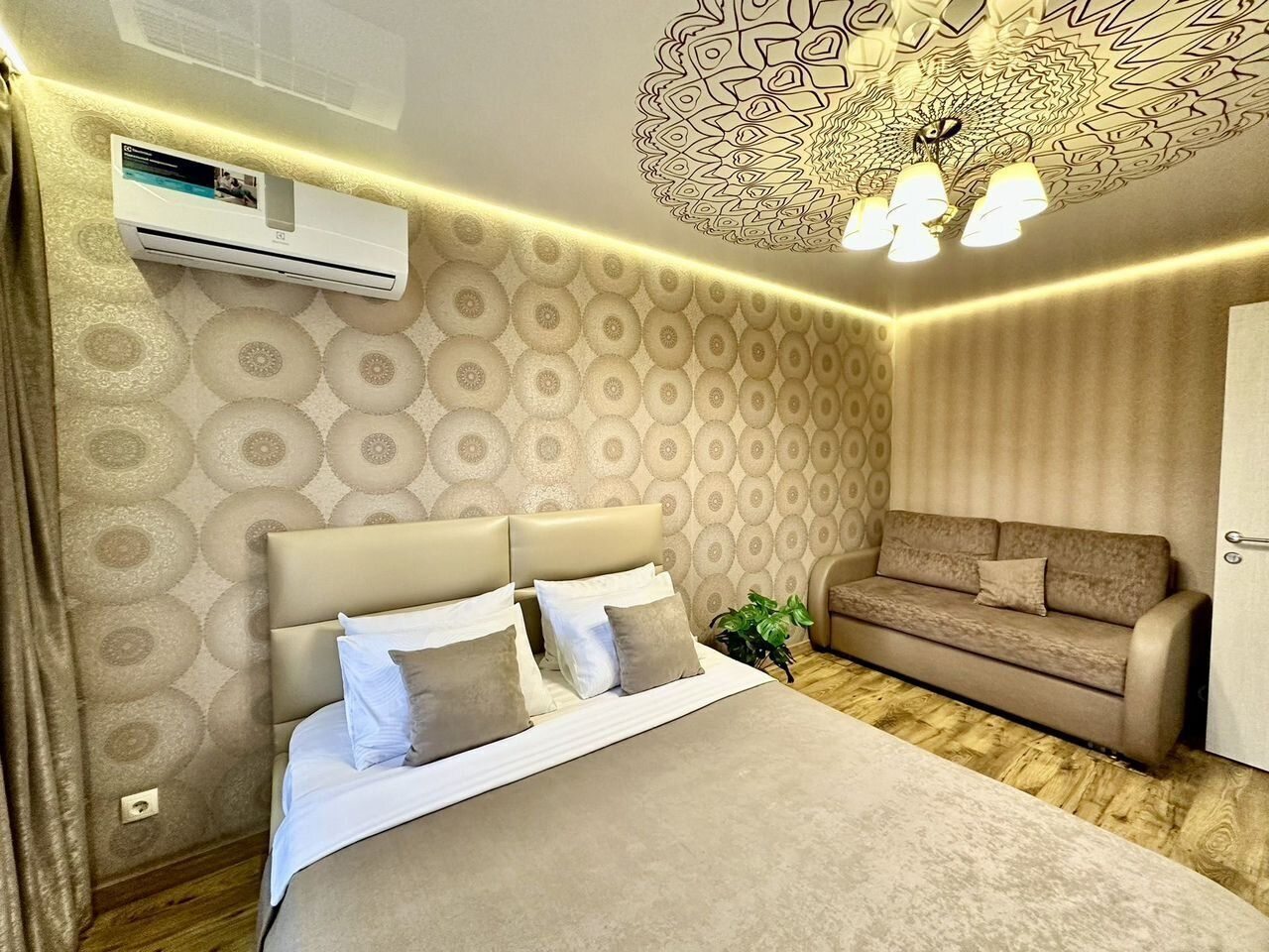 Уютные апартаменты оборудованы комфортабельной двуспальной кроватью со свежим постельным бельем, диваном, кондиционером, телевизором, шкафом-купе, вешалками для верхней одежды и балконом. Санузел раздельный и оснащен необходимой сантехникой.