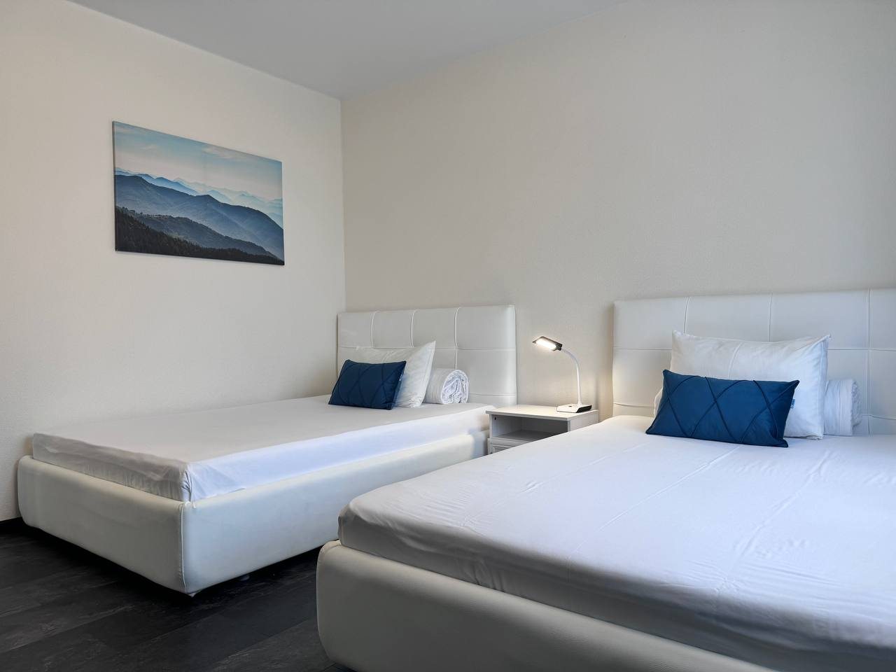 Номер с современным ремонтом оснащен большим количеством спальных мест. Такой вариант отлично подойдет для отдыха с семьей или поездки в компании друзей. Ванная комната укомплектована стиральной машиной, феном, комплектом полотенец. Установлен Wi-Fi и телевизор с кабельными каналами.