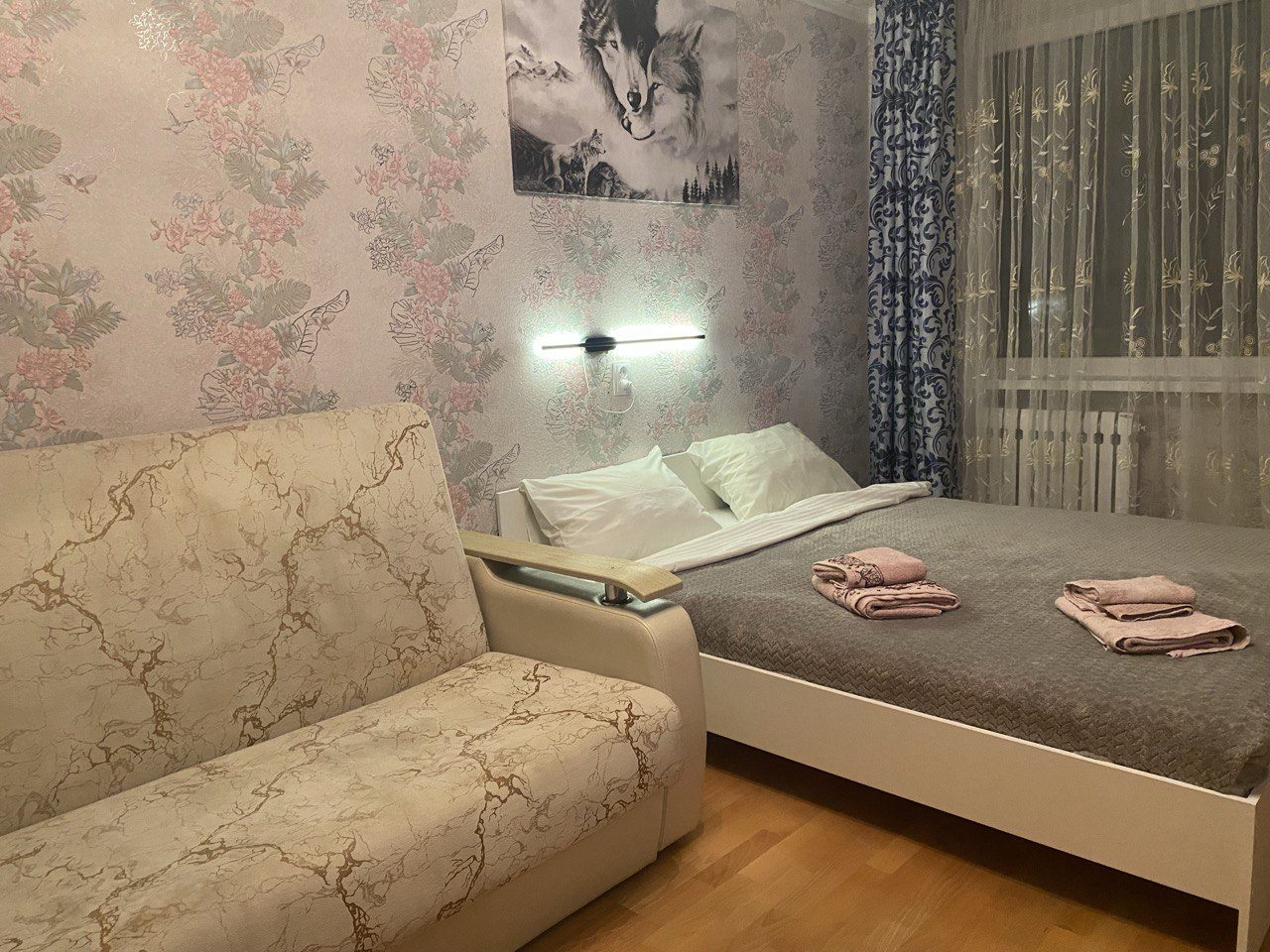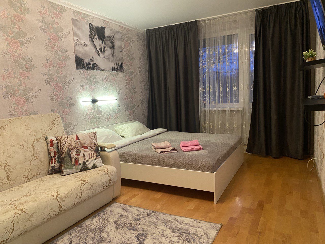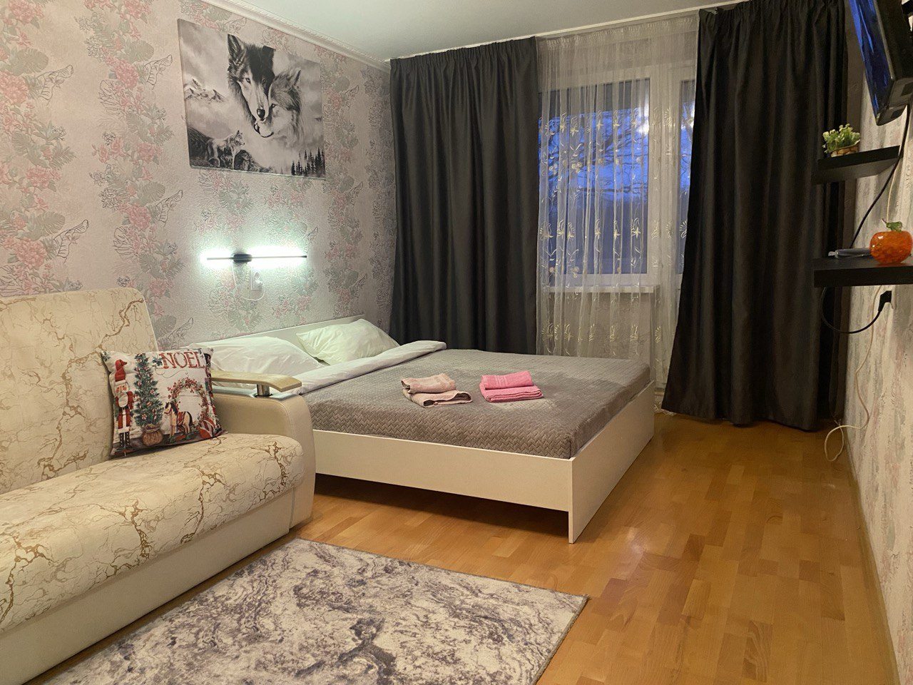Уютные апартаменты на четвертом этаже предлагают комфортное размещение с просторной спальней-гостиной, где вас ждут двуспальная кровать и диван-кровать. Все необходимые удобства предусмотрены, включая два телевизора, Wi-Fi и вместительный шкаф-купе, а также лоджия с видом на тихую улицу для приятного отдыха. В ванной комнате есть всё: от фена до стиральной машины.