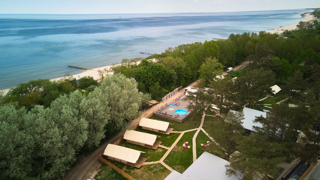 В глэмпинге имеется кровать, диванчик, стол и шкаф. В ванной комнате предоставляются фен, халаты, набор полотенец и косметические принадлежности. В распоряжении гостей входят: плавательный бассейн с красивым видом, в детский бассейн детям предоставляются игрушки, можно покататься на велосипеде, полежать в гидромассажной ванне, а также имеется оборудование для занятия водными видами спорта. Возможно заселение с питомцами.