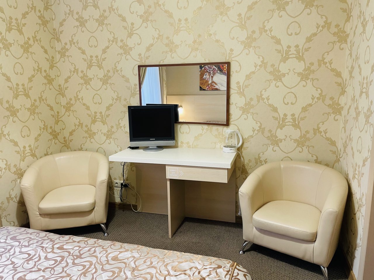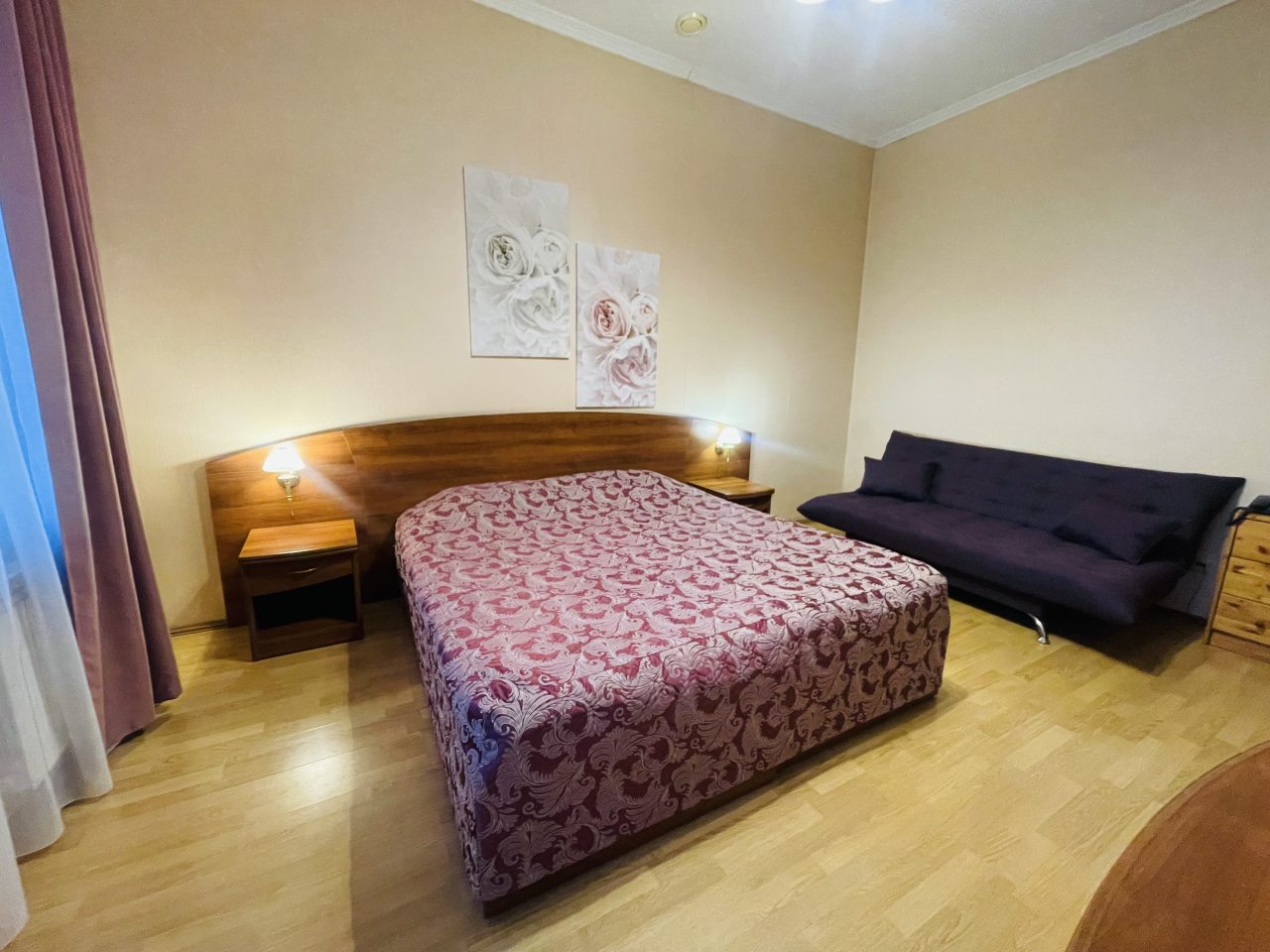 Чистый, аккуратный номер. Расположен близко к выезду из города, для нас было важно. Тихо, спокойно. Белье идеальное, белое. Полотенец много. Вся гигиена и моющие в наличие. Приятный администратор. Стандартный завтрак, кофе сварили за небольшую денежку. Цена качество идеальное. Можно сказать "без денег". Спасибо, приедем ещё!!