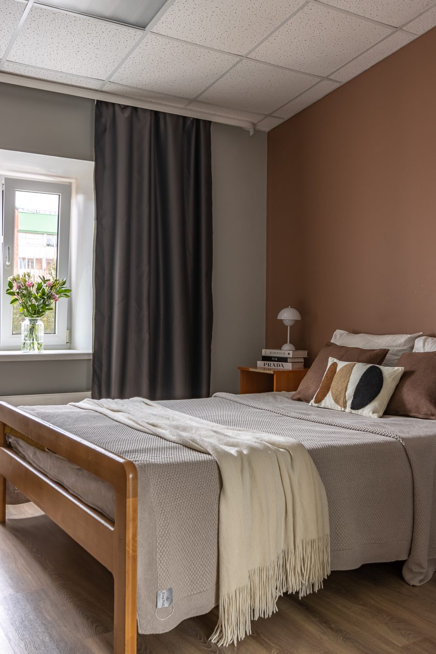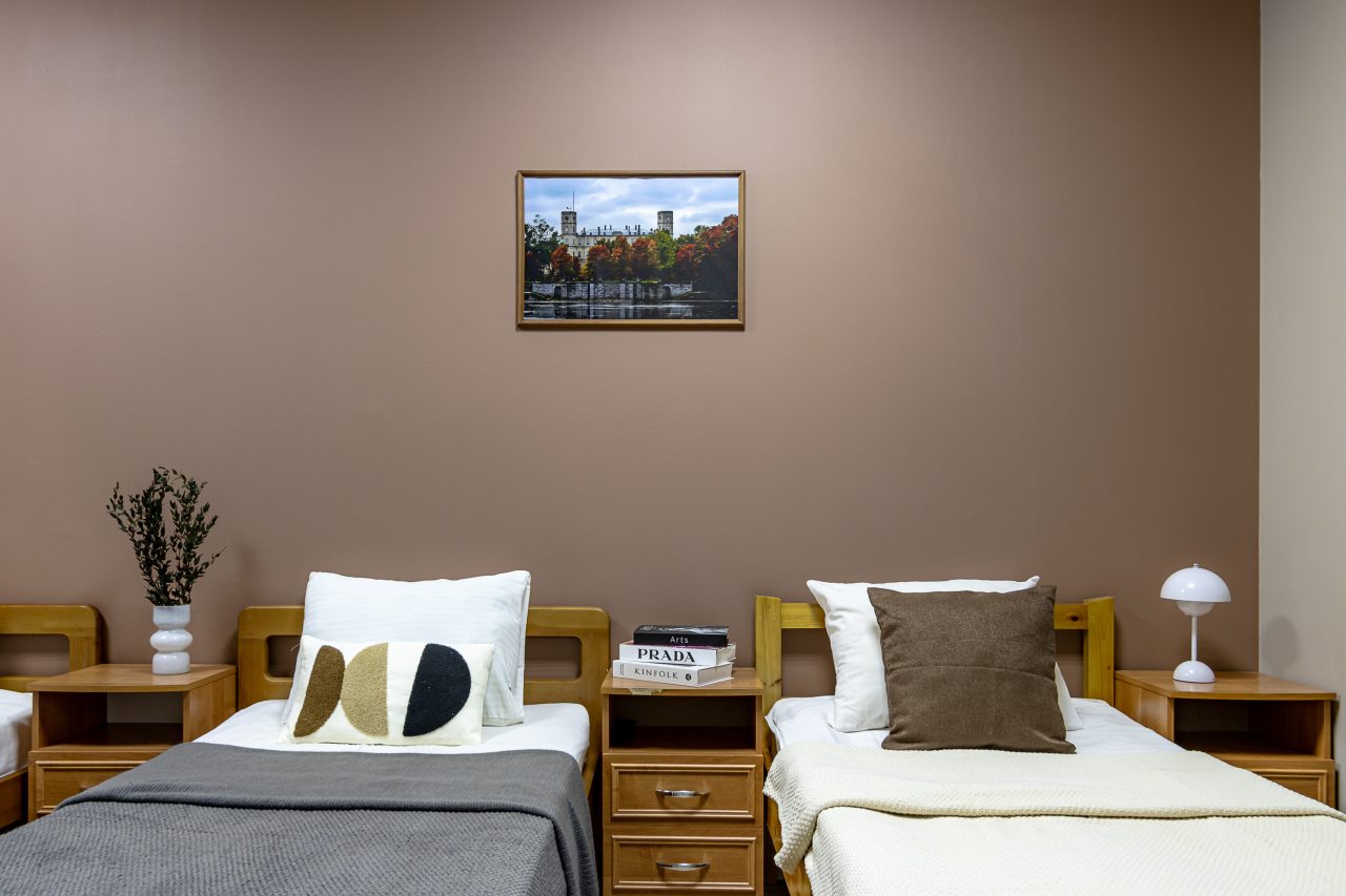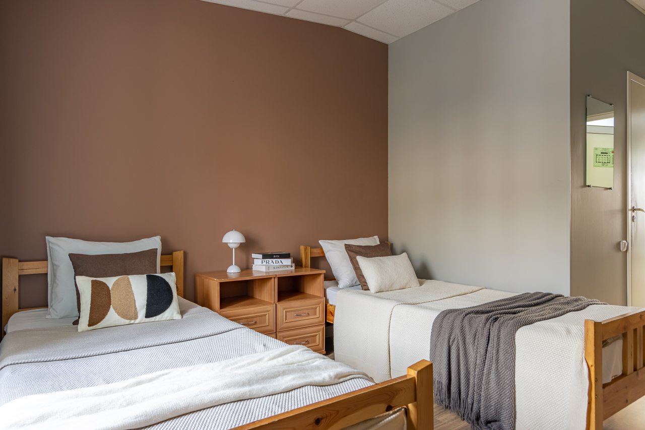 Мы снимали комнату на двоих, и всё было чисто и аккуратно. На этаже есть туалет и душ, а также холодильник. Рекомендую брать с собой чашку, ложку, вилку и нож, так как их нет в номере. Воду можно вскипятить в чайнике, который находится в коридоре.