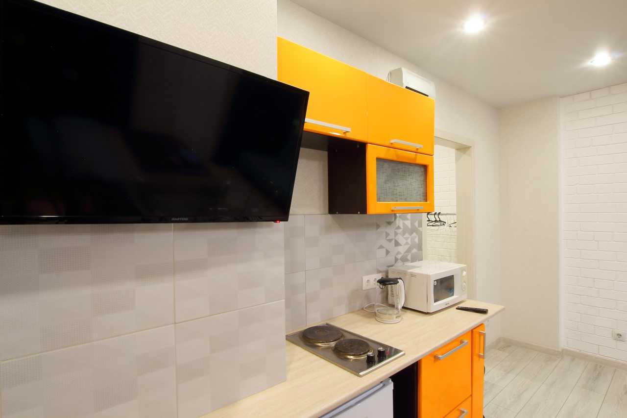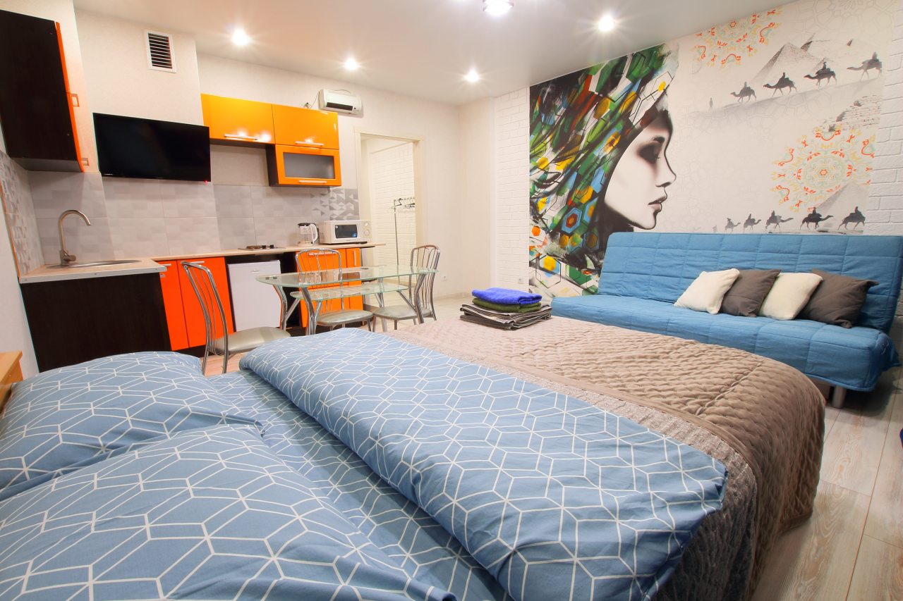 Прекрасные апартаменты. Очень яркий и красивый дизайн выполнен, новенькая техника, мебель. Кровать хоть и самая простая, но матрас удобный. Очень комфортно, что в квартире много света и комнаты просторные. Квартира аккуратная.