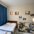 Студия находится в Сочи примерно в 800 метрах от набережной. Прилетели вдвоем с подружкой немного развеяться. Эта квартира нам понравилась, поэтому выбрали ее. В квартире симпатично и удобно было отдыхать. На кухне мы не готовили, но посудой и холодильником-чайником пользовались.