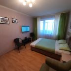 Хорошая квартира, с которой действительно открывается отличный вид на город. Но и внутри она неплохо продумана и хорошего качества ремонт здесь был сделан. По крайней мере нам так сказал менеджер, но по качеству и по степени износа это заметно. Спальные места дополнительные есть, можно приезжать с детьми. Имеется раскладной диван и двуспальная кровать. Расположение квартиры неплохое.