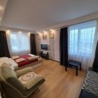 Эти апартаменты с приятным стандартным интерьером нас устроили на все 100. Мы заселились быстро, бесконтактно и сразу попали в чистую хорошую квартиру. Мебель удобная, матрас на кровати в меру жесткий. Подушки мягкие. Санузел раздельный и это тоже очень удобно. Бытовой техники много, есть и фен, и утюг. Столовых приборов хватило даже на компанию из трех человек. Отдыхали здесь с ребенком и всего хватило.