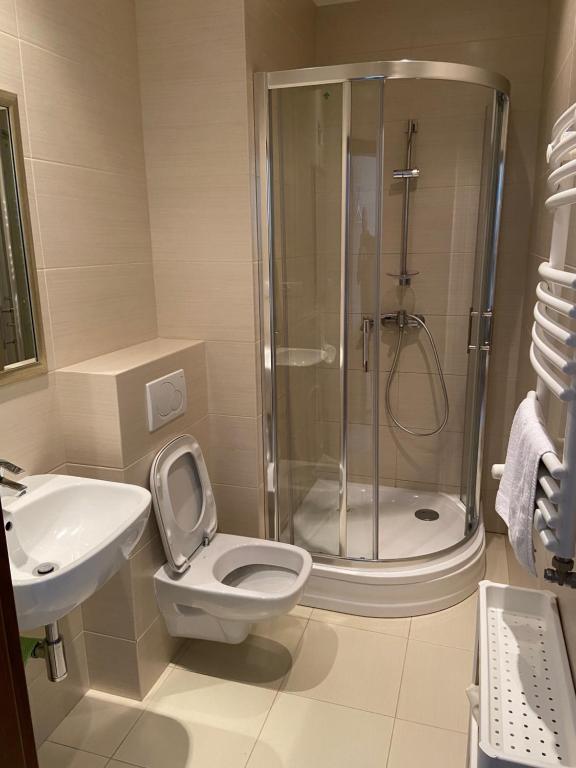 В каждом номере гостевого дома Pod Lipami устроена собственная ванная комната и имеется холодильник, принадлежности для чая/кофе, полотенца и телевизор.