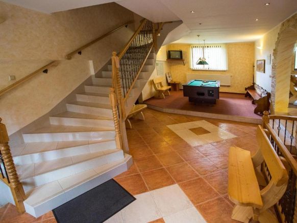 Гости могут отдыхать в общем зале перед телевизором и играть в настольный футбол.