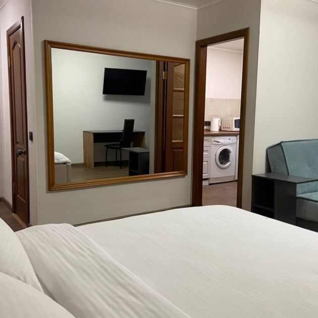 В вашем распоряжении современные и просторные одно, двух или даже трехкомнатные квартиры, оборудованные спальной зоной с кроватью либо диваном, ванной комнатой с туалетом, раковиной, зеркалом и стиральной машиной, кухней со всеми принадлежностями для приготовления еды и обеденным столом, телевизором, шкафом для хранения вещей и еще многим другим.
