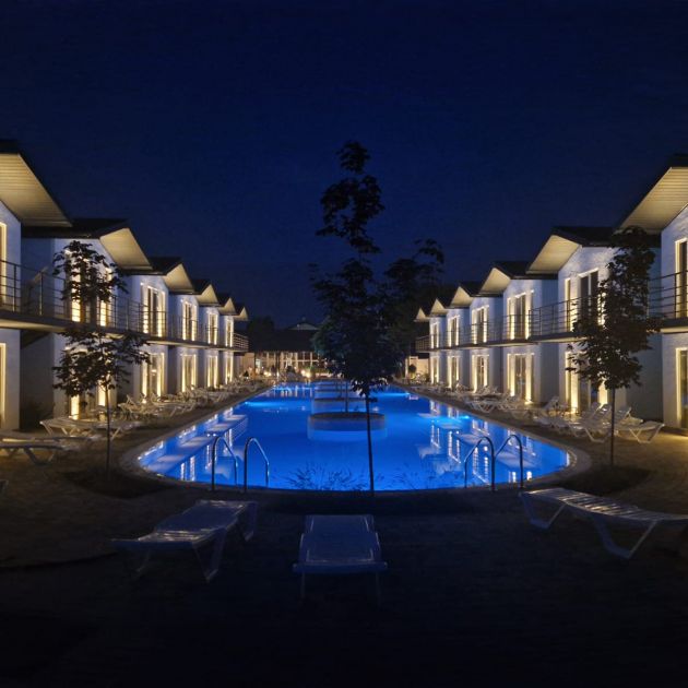 Чаще всего предоставляется открытый бассейн с подогревом и без, но и встречается закрытый тип. Стоит отметить, что за состоянием корпуса бассейна и воды в нем тщательно следят: устанавливаются системы фильтрации, используются безопасные средства обеззараживания. Для полноценного релакса на территории коттеджей: