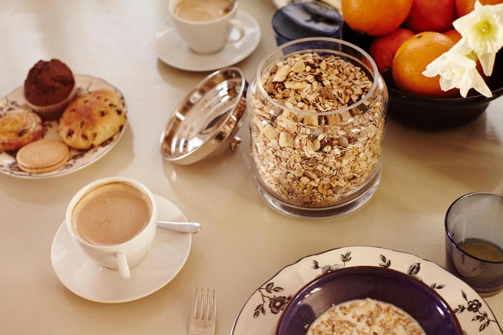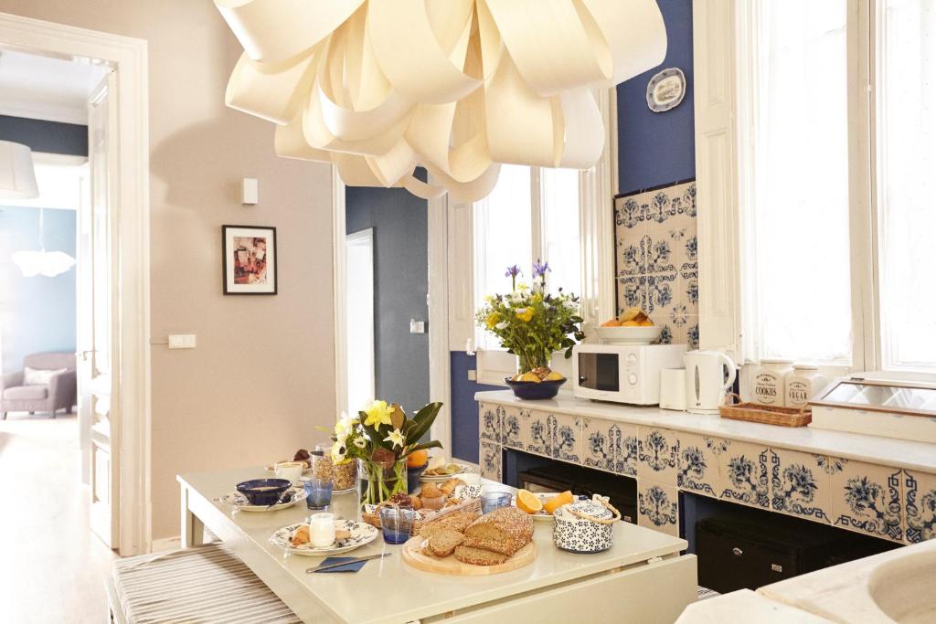 На прелестной кухне для гостей сервируется бесплатный простой завтрак.
