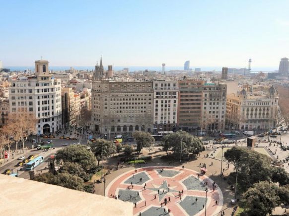 На площади Каталонии останавливаются автобусы, на которых можно без пересадок добраться до аэропорта Эль-Прат.
