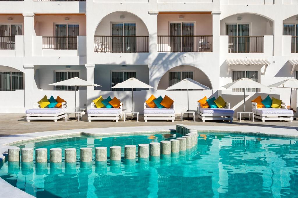 Гости могут освежиться в бассейне и отдохнуть в шезлонгах под теплыми лучами солнца Ибицы.