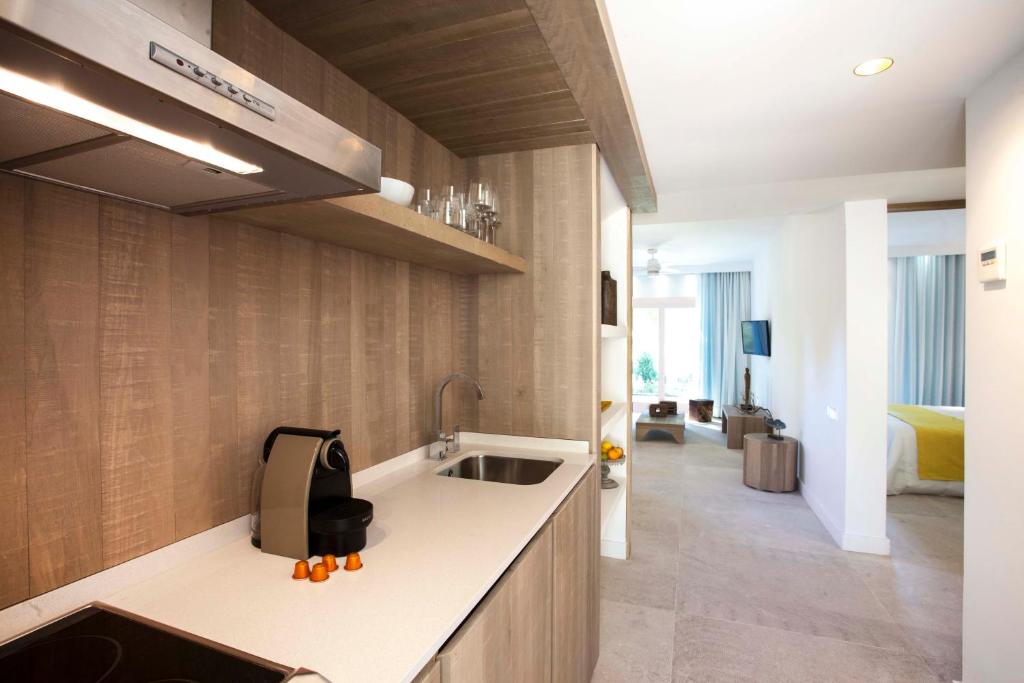 В гостиной установлен диван-кровать, а на полностью оборудованной кухне — микроволновая печь, керамическая плита, холодильник и кофеварка Nespresso.