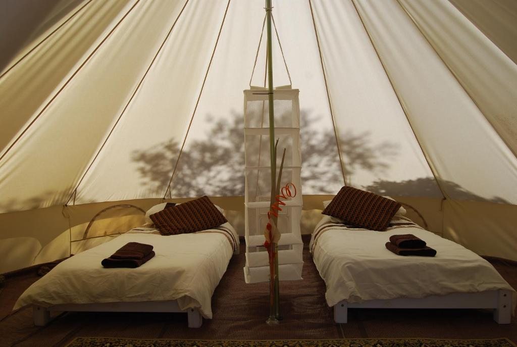 К услугам гостей роскошные круглые шатры с полноразмерными кроватями.