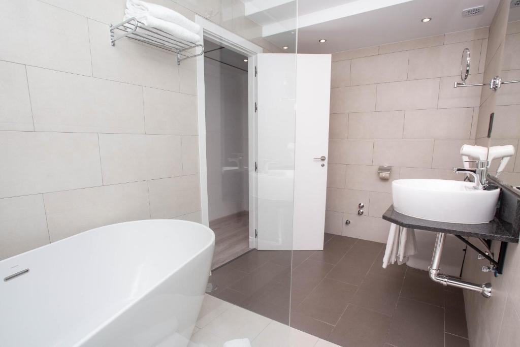 Во всех номерах отеля имеются кондиционер, сейф и собственная ванная комната с феном.