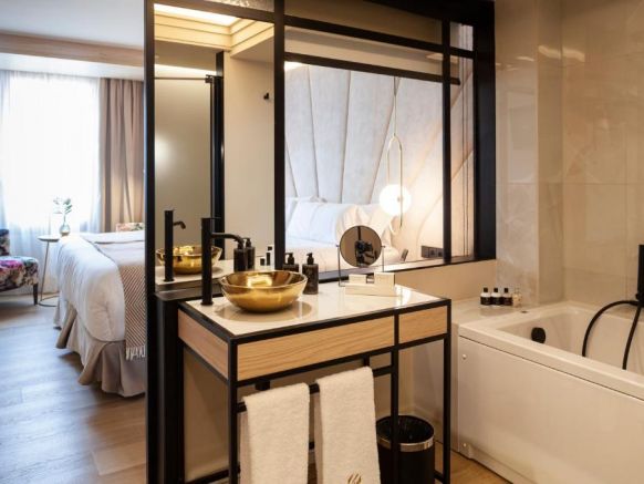 В ванных комнатах есть ванна или душ, фен с диффузором, выпрямитель для волос, бесплатные туалетно-косметические принадлежности и бесплатный халат и тапочки.