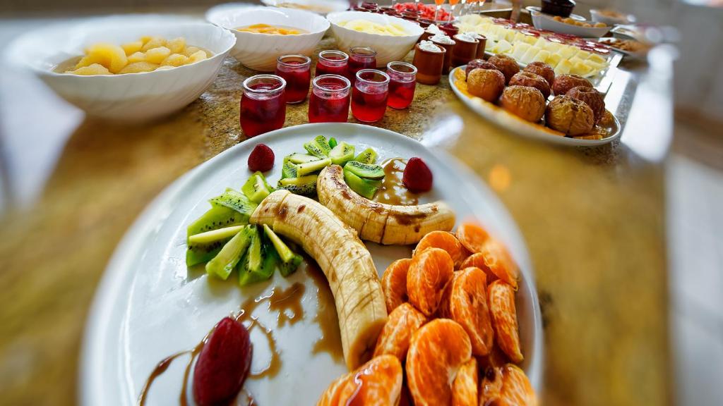 На территории работает ресторан и бар, где на обед предлагаются легкие закуски, а на ужин подаются более сытные блюда.