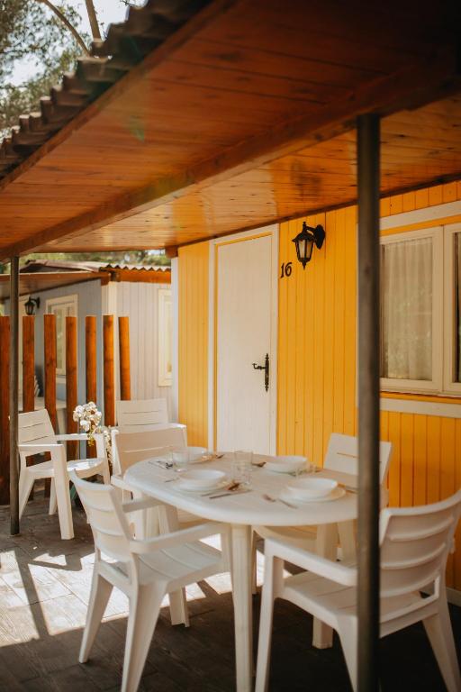 В деревянных бунгало кемпинга Caledonia имеется небольшая терраса или патио.