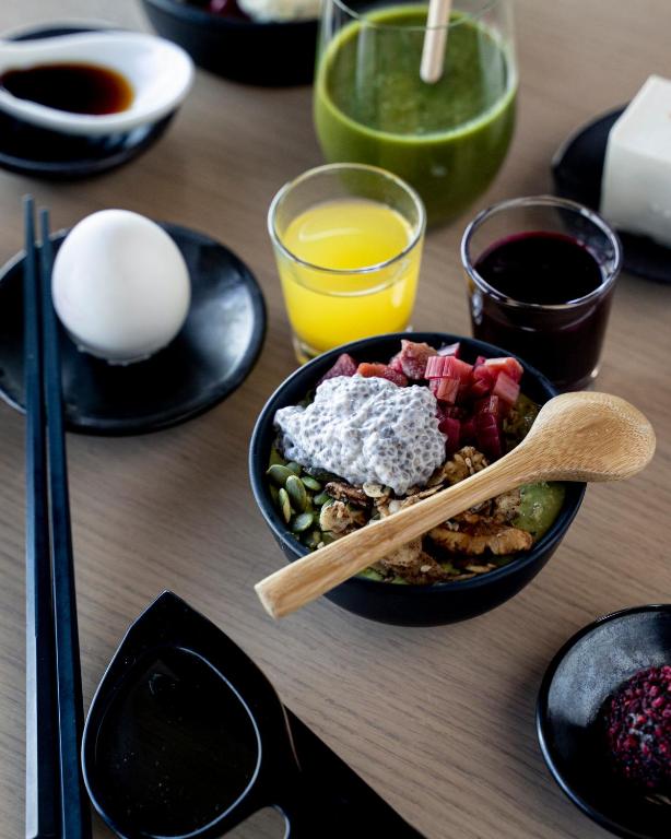 За дополнительную плату ежедневно подают кафе-завтрак из экологически чистых продуктов, в числе которых пудинг из семян чиа, яичные маффины, сэндвичи и фрукты.