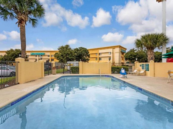The hotel has a giant resort-style pool.